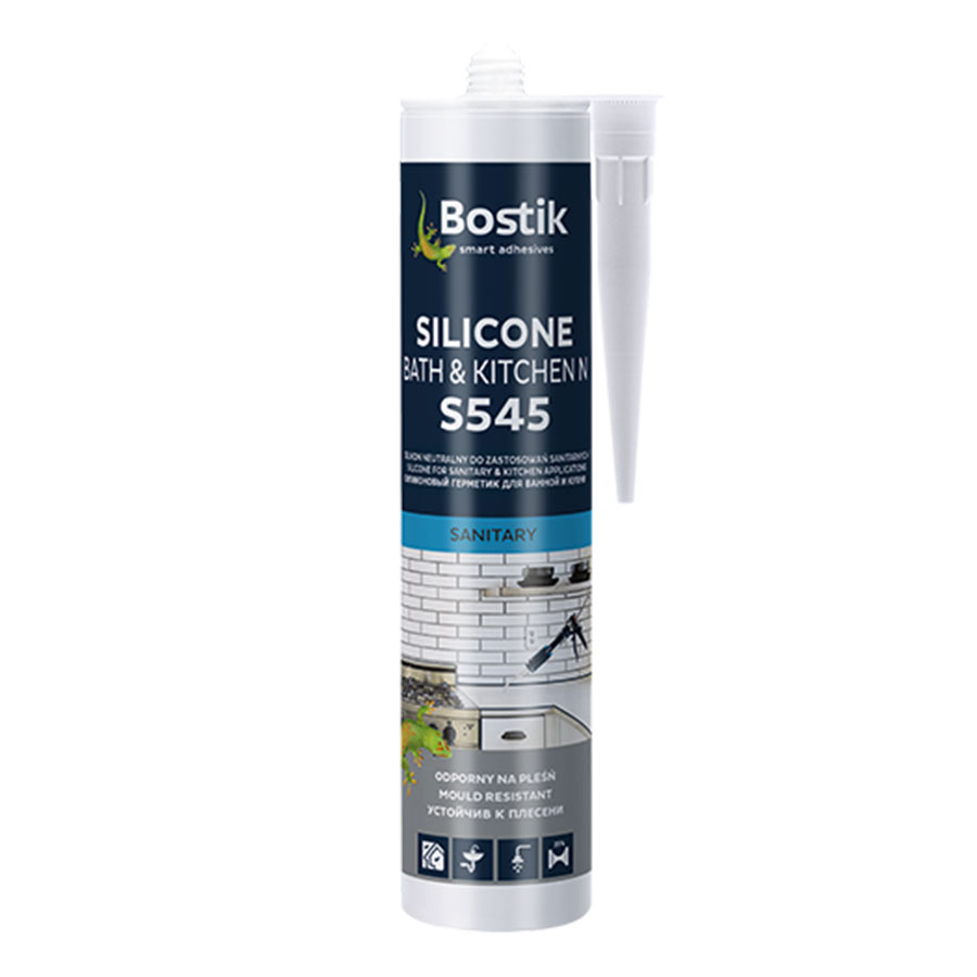 SILICONE BATH & KITCHEN N S545 to trwale elastyczny, jednoskładnikowy silikonowy kit uszczelniający z neutralnym systemem utwardzania, przeznaczony do uszczelnień sanitarnych i ogólnobudowlanych.
