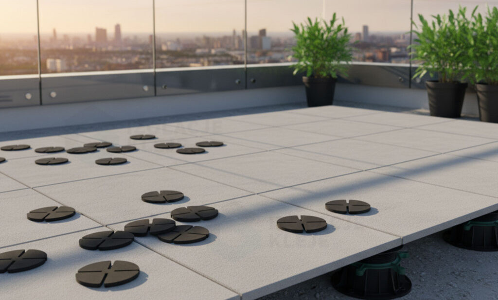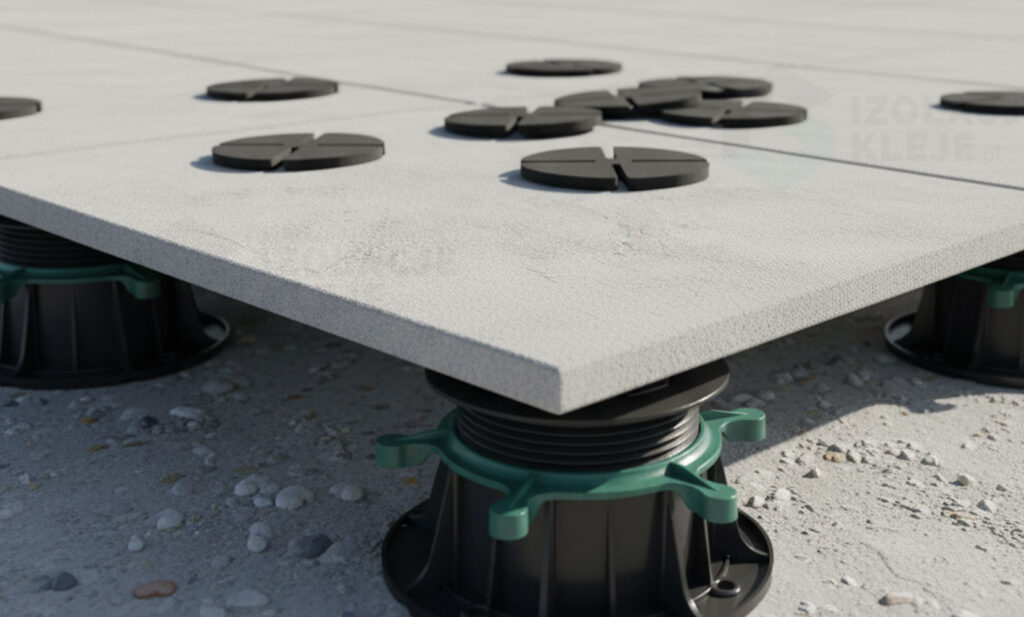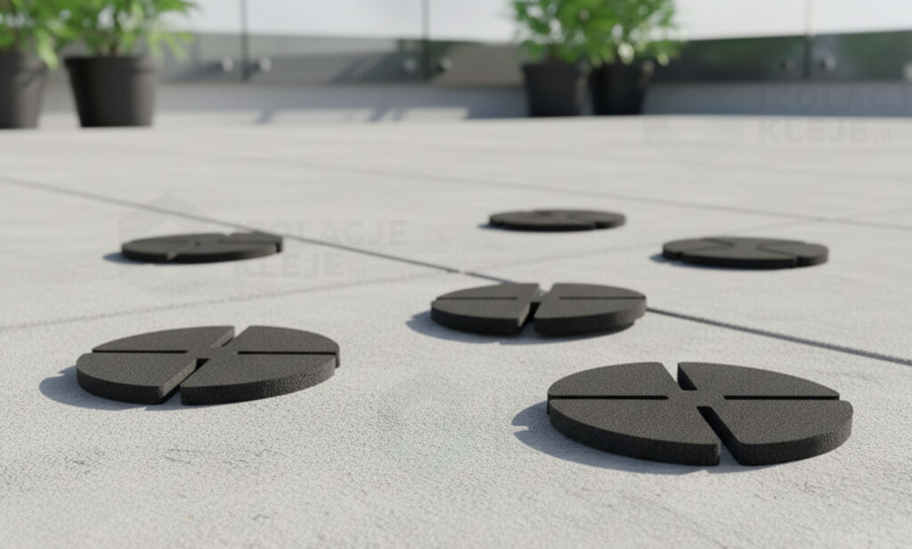 Najważniejszy efekt? Skuteczne zredukowanie pustego, rezonującego odgłosu, który powstaje przy styku płyty z głowicą wspornika. Nakładka ogranicza przenoszenie drgań i tłumi kroki, dzięki czemu taras, balkon czy loggia stają się wyraźnie cichsze. To szczególnie docenią mieszkańcy budynków wielorodzinnych i wszystkie miejsca, w których komfort akustyczny ma znaczenie — od stref relaksu po ogródki restauracyjne.