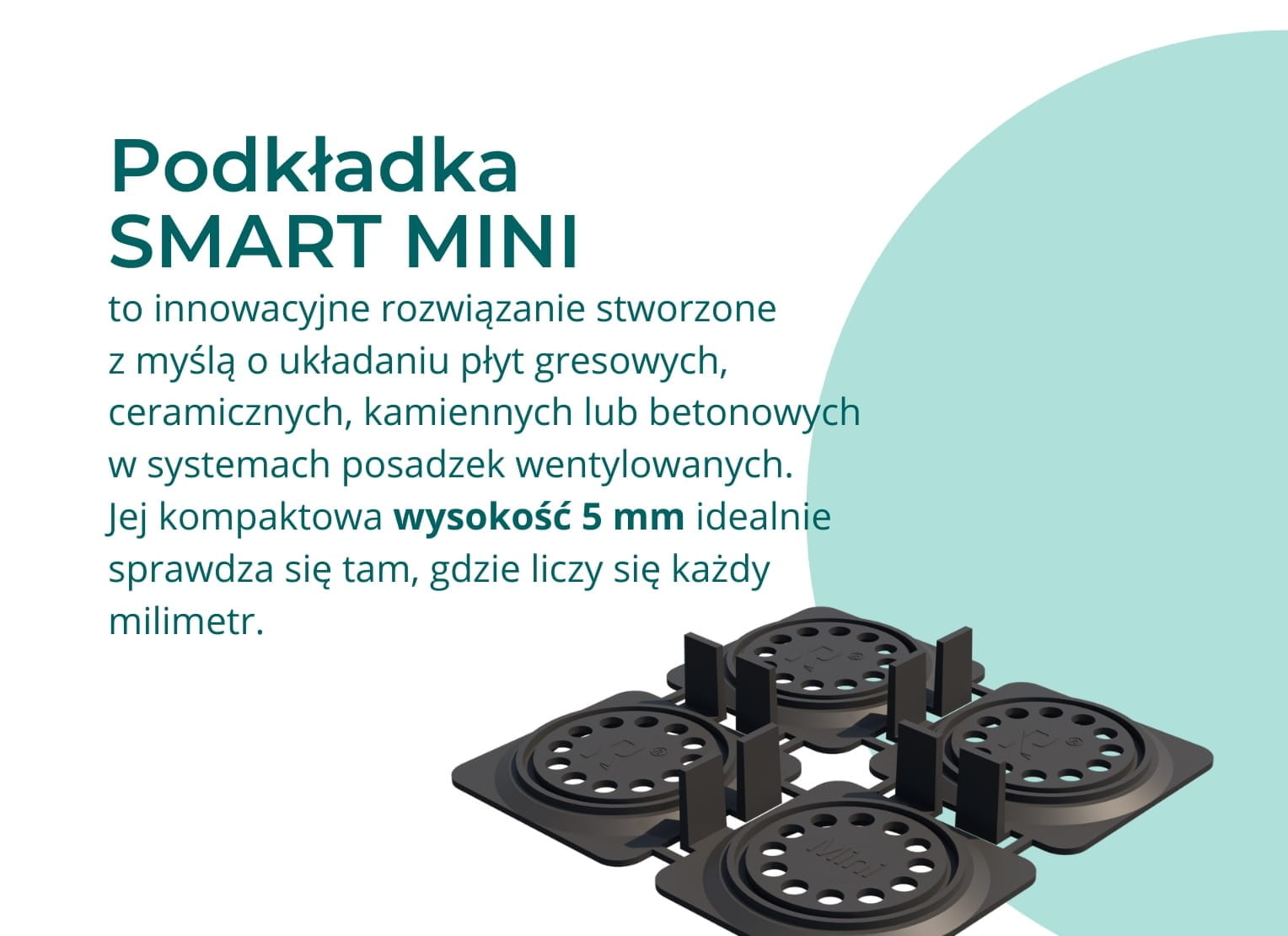 Wspornik SMART MINI RENOPLAST to niski, precyzyjny element nośny do posadzek wentylowanych z płyt gresowych, ceramicznych, kamiennych lub betonowych. Minimalna wysokość 5 mm pozwala zastosować go tam, gdzie przestrzeń montażowa jest skrajnie ograniczona — na balkonach, loggiach czy tarasach dachowych, pod progami oraz przy warstwach izolacji, które nie pozwalają na użycie wyższych podstaw.