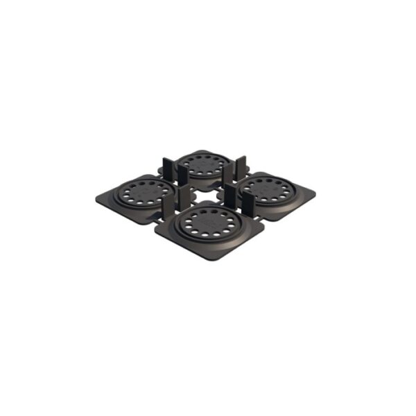 Wspornik SMART MINI RENOPLAST to niska podstawa (5 mm) do posadzek wentylowanych z płyt gresowych, ceramicznych, kamiennych i betonowych — idealna tam, gdzie brakuje miejsca montażowego. Ma zintegrowane dystanse 2 mm, modułową budowę (możliwość podziału na 2 lub 4 części) oraz współpracuje z nakładkami dystansowymi 0,5–3 mm i piętrowaniem, co ułatwia precyzyjne poziomowanie. Wykonany z tworzywa odpornego na warunki atmosferyczne i UV, montuje się szybko, bez specjalistycznych narzędzi.